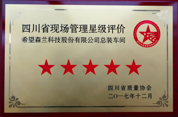 2018年1月4日,公司總裝車(chē)間被評為“四川省現場(chǎng)管理星級評價(jià)五星級現場(chǎng)”。同期榮獲五星級現場(chǎng)的公司還有通威太陽(yáng)能(成都)有限公司、中國核動(dòng)力研究設計院設計所、中國兵器裝備集團自動(dòng)化研究所。