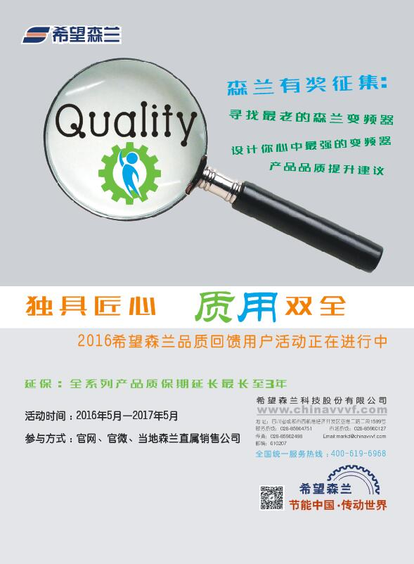 作為國內變頻器行業(yè)領(lǐng)軍企業(yè)的希望森蘭科技股份有限公司(以下簡(jiǎn)稱(chēng)“希望森蘭”),在今年的5月份重磅推出了主題為“獨具匠心,質(zhì)用雙全”的品質(zhì)提升回饋活動(dòng),目前活動(dòng)正在火熱進(jìn)行中。